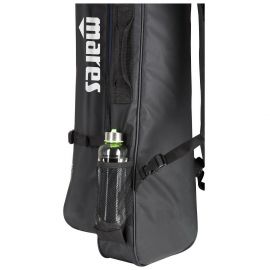Jedna taška pre plutvy a druhá ako klasický batoh pre osobné veci spojené do jednej. Plne funkčná taška do ktorej bez problémov zbalíte celú Vašu freedive výbavu. Súčasťou sú aj ergonomické ramenné popruhy a bočný držiak na fľašu. Dlhšia taška pre plutvy sa otvára pomocou dlhého zipsu a nájdete na nej aj silnú rukoväť alebo držiak na fľašu s nápojom. Predná, kratšia taška je určená pre ostatnú výbavu ako oblek, masku, šnorchel a iné doplnky potrebné na Freediving alebo Spearfishing.